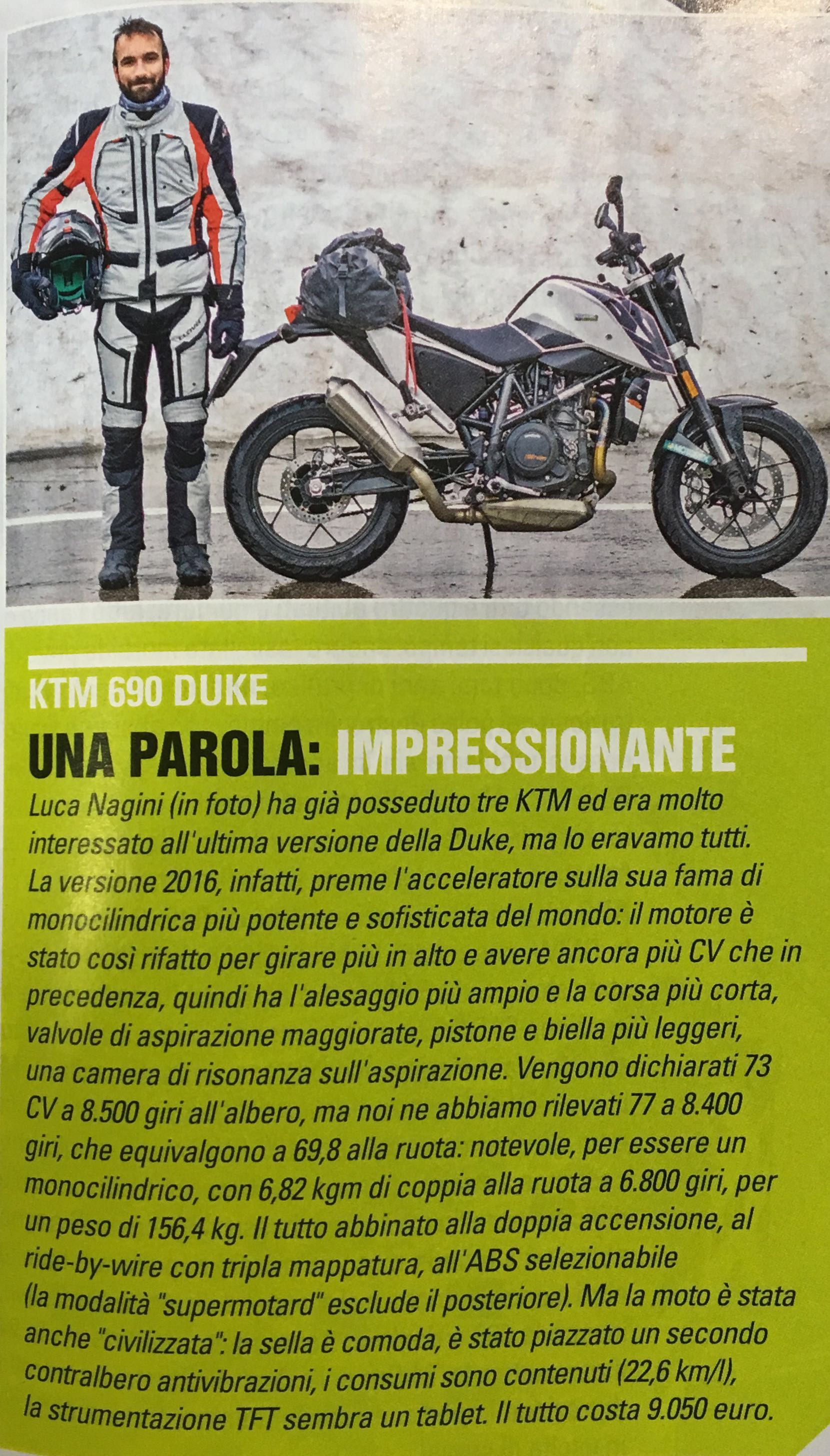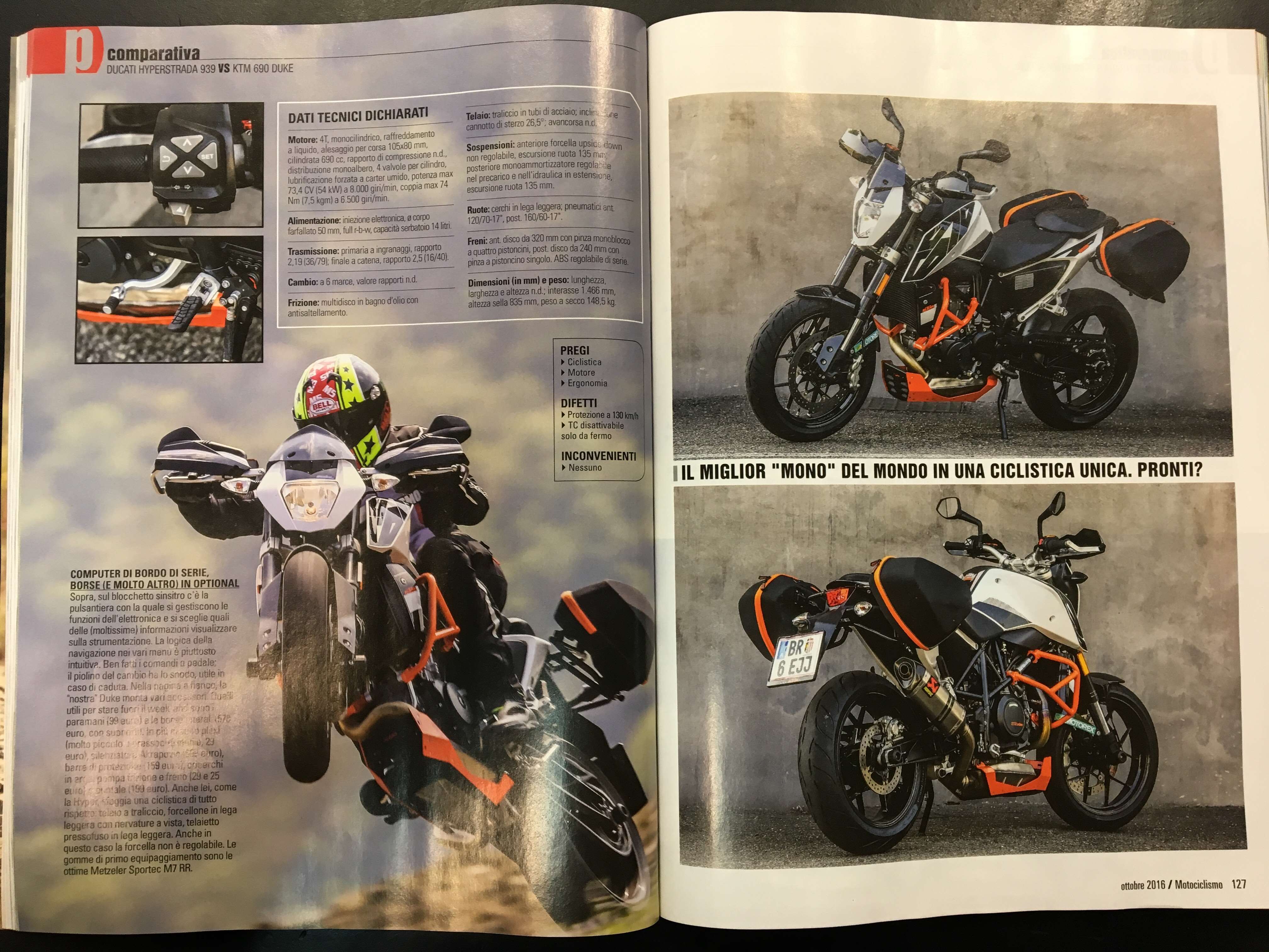 leggi tutto >Due interessantissimi articoli su Motociclismo di Settembre e di Ottobre, che tessono le lodi della magnifica Duke 690. Un ulteriore conferma per le prestazioni della nostra DUKE. [...]