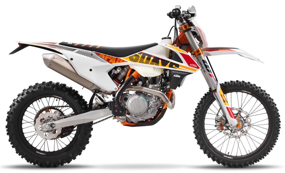 Nel 2016, la Sei Giorni Internazionale di Enduro (ISDE) si svolgerà a Navarra, Spagna, e la gamma di modelli KTM è stata opportunamente equipaggiata per affrontare con successo qualsiasi fondo, polveroso o roccioso. Evviva!